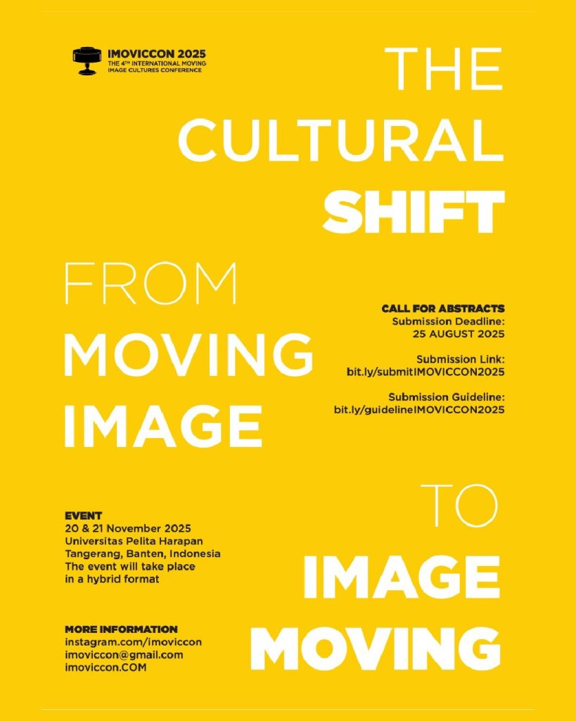 IMOVICCON 2025 took place on November 20–21, 2025, at UPH Lippo Village, Indonesia. Earlier, the team opened a Call for Abstracts, with submissions closing on October 10, 2025. The conference carried the theme The Cultural Shift from Moving Image to Image Moving. It explored how visual culture continues to evolve. In particular, it examined how traditional moving images now intersect with interactive media shaped by digital platforms, AI visuals, and social narratives.
